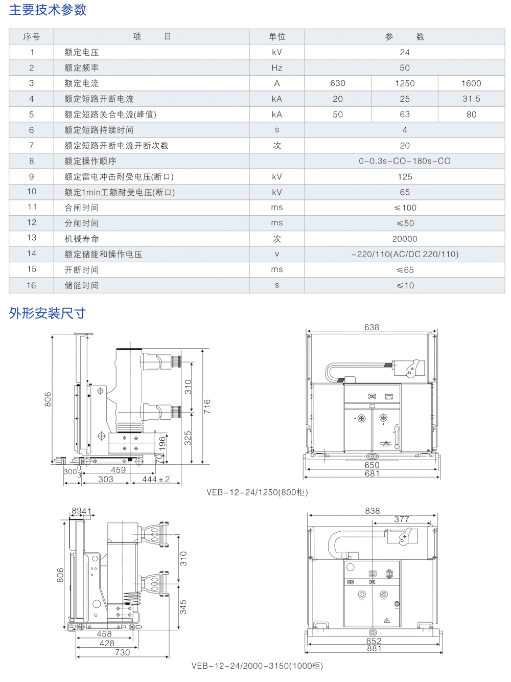 户内高压真空断路器